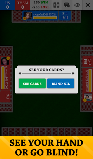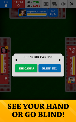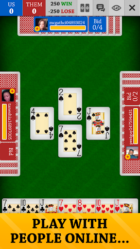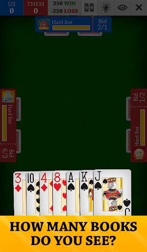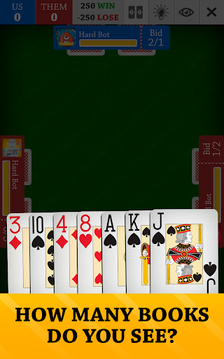 В Spades Jogatina: Cards Online , ви граєте з 3 іншими гравцями-залежними, об’єднавши 2 команди, і ваша мета — набрати 500 очок (або 250 очок у нашому багатокористувацькому режимі) у раундах з 13 трюками в кожному (також відомих як «книги»). ). 🚩 Пікова масть — це козир, тому використовуйте її розумно під час ставок! Виберіть свою ставку, або, якщо вам пощастить (чи відчайдушно!), оберіть нуль або всліп.